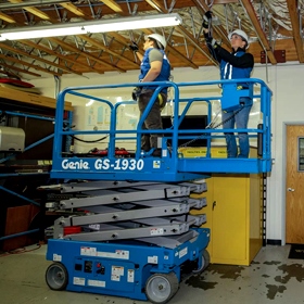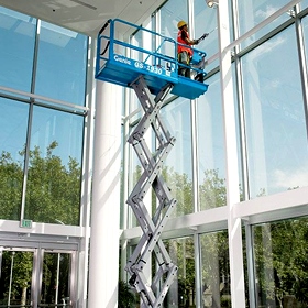 Maneuver easily in tight spaces with the slab scissor lift. Boasting zero-emission electric operation and low noise levels, this unit excels in indoor and outdoor construction, maintenance and installation applications on firm, level surfaces.